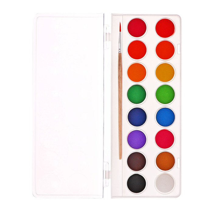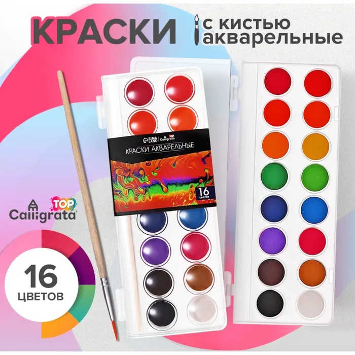 Акварель Calligrata, 16 цветов, разработана с учетом рекомендаций педагогов. Идеально подходит для занятий рисованием в детском саду, школе и дома. Яркие, чистые цвета развивают фантазию и интерес к творчеству. Акварель легко смывается с рук, отлично смешиваются между собой и позволяют создать множество оттенков, обеспечивают однородное окрашивание. Краски быстро высыхают и не портятся со временем. Безопасны для детей, нетоксичны. Выпускаются в пластиковом пенале с отделением для кисточки. Упаковка обладает компактными размерами и легким весом. диаметр кювета 23 мм.