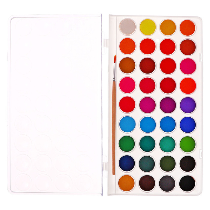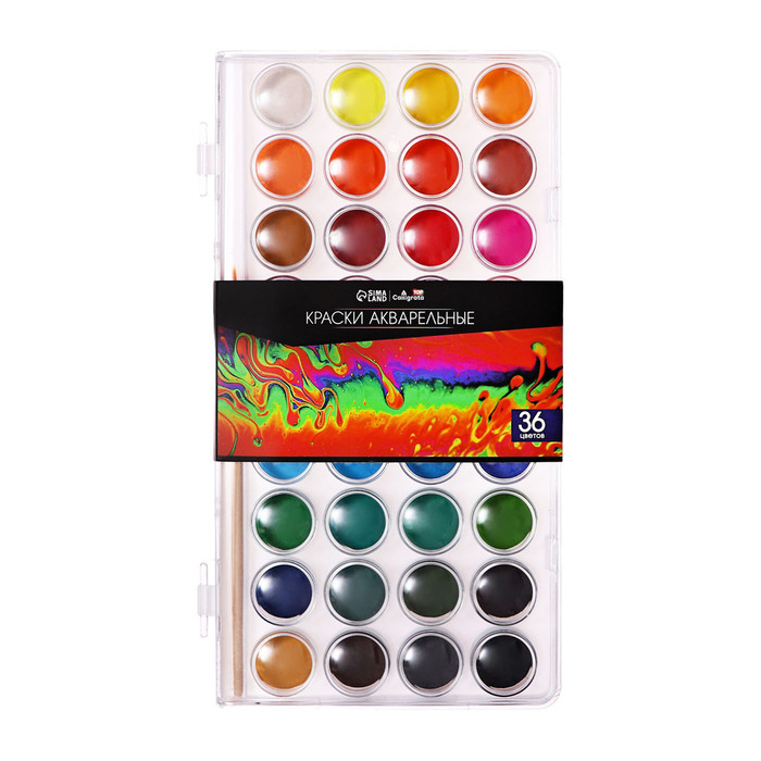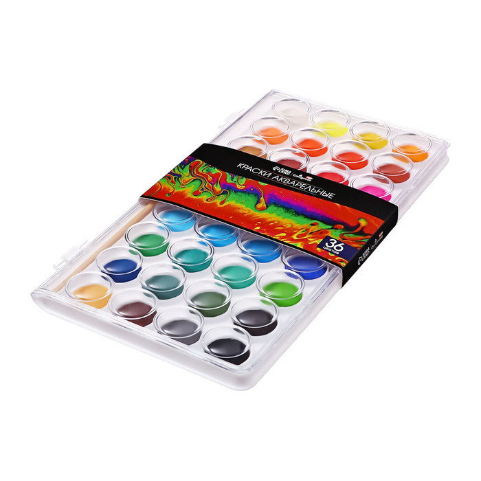 Акварель Calligrata, 36 цветов, разработана с учетом рекомендаций педагогов. Идеально подходит для занятий рисованием в детском саду, школе и дома. Яркие, чистые цвета развивают фантазию и интерес к творчеству. Акварель легко смывается с рук, отлично смешиваются между собой и позволяют создать множество оттенков, обеспечивают однородное окрашивание. Краски быстро высыхают и не портятся со временем. Безопасны для детей, нетоксичны. Выпускаются в пластиковом пенале с отделением для кисточки. Упаковка обладает компактными размерами и легким весом. диаметр кювета 23 мм.