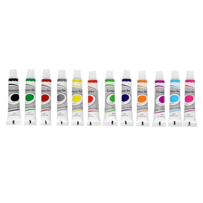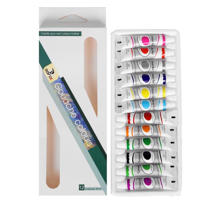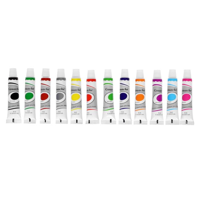 Краски гуашь, 12 цветов, в пластиковой тубе, 9 мл, в картонной коробке — Характеристики