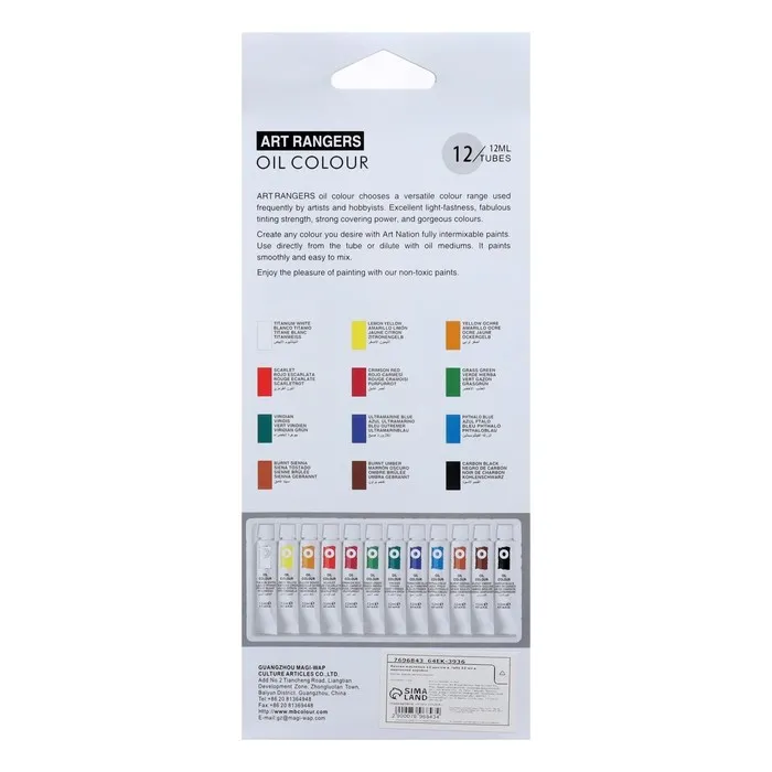 Краски масляные 12 мл, в металлической тубе, в картонной коробке, 12 цветов — Характеристики