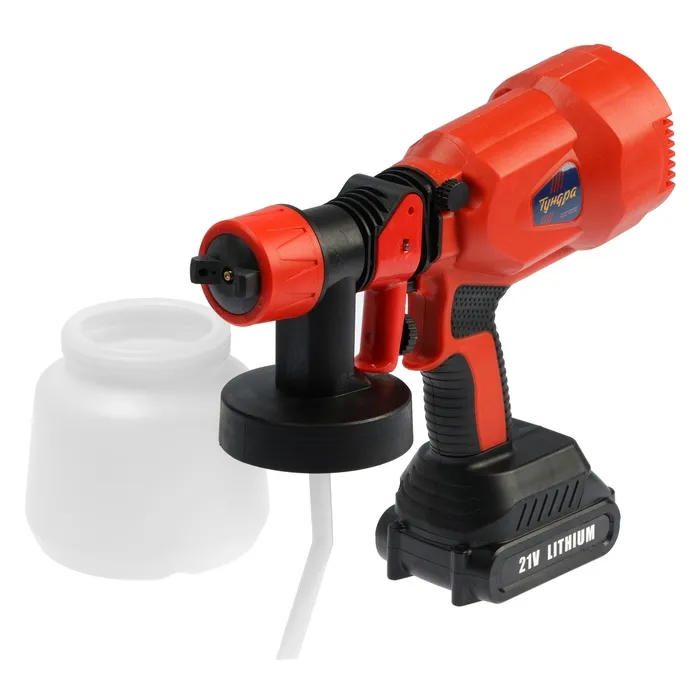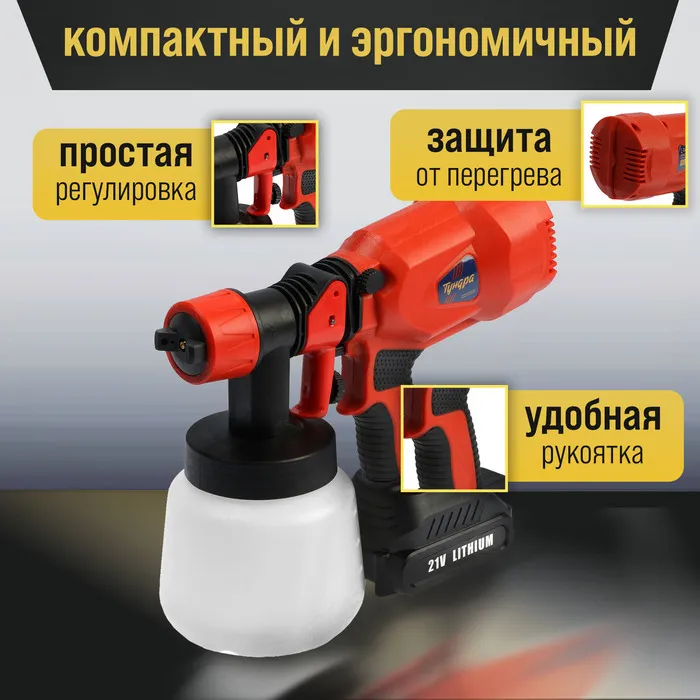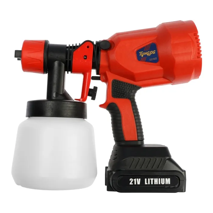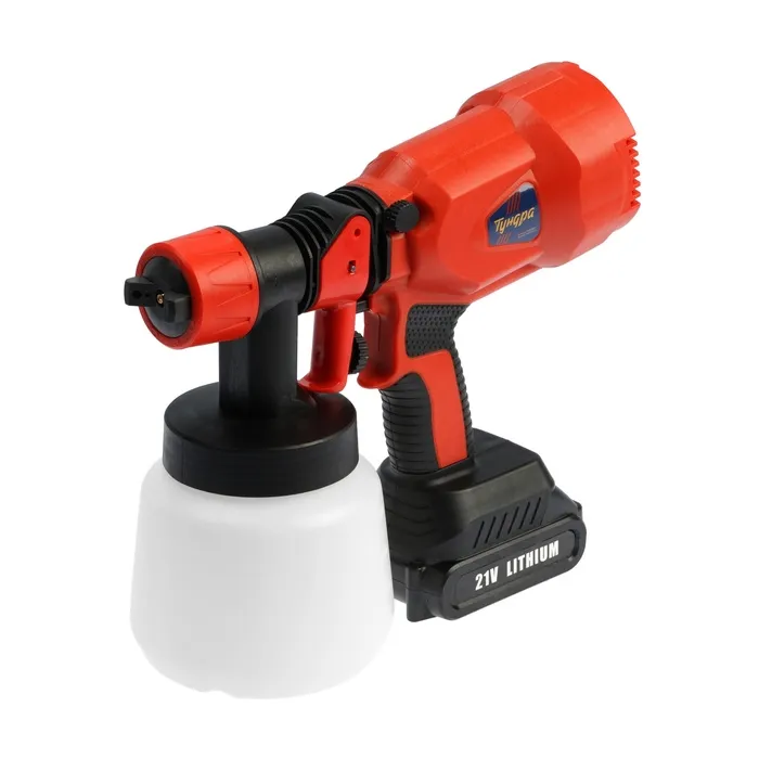 Краскопульт аккумуляторный ТУНДРА, 21 В, 800 мл, 1.5 Ач, 650 мл/мин, сопло 1.8/2.5 мм — Характеристики