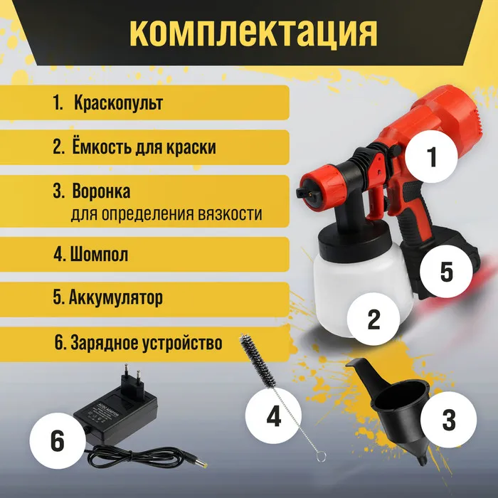 Практичность и надежность: Аккумуляторный краскопульт обеспечивает удобство и мобильность при работе. Он подходит для профессионалов и любителей, обеспечивая надежное выполнение задач. С этим краскопультом вы сможете быстро и качественно выполнять покрасочные работы. Аккумуляторный краскопульт – это надежный выбор для тех, кто ценит качество и удобство.