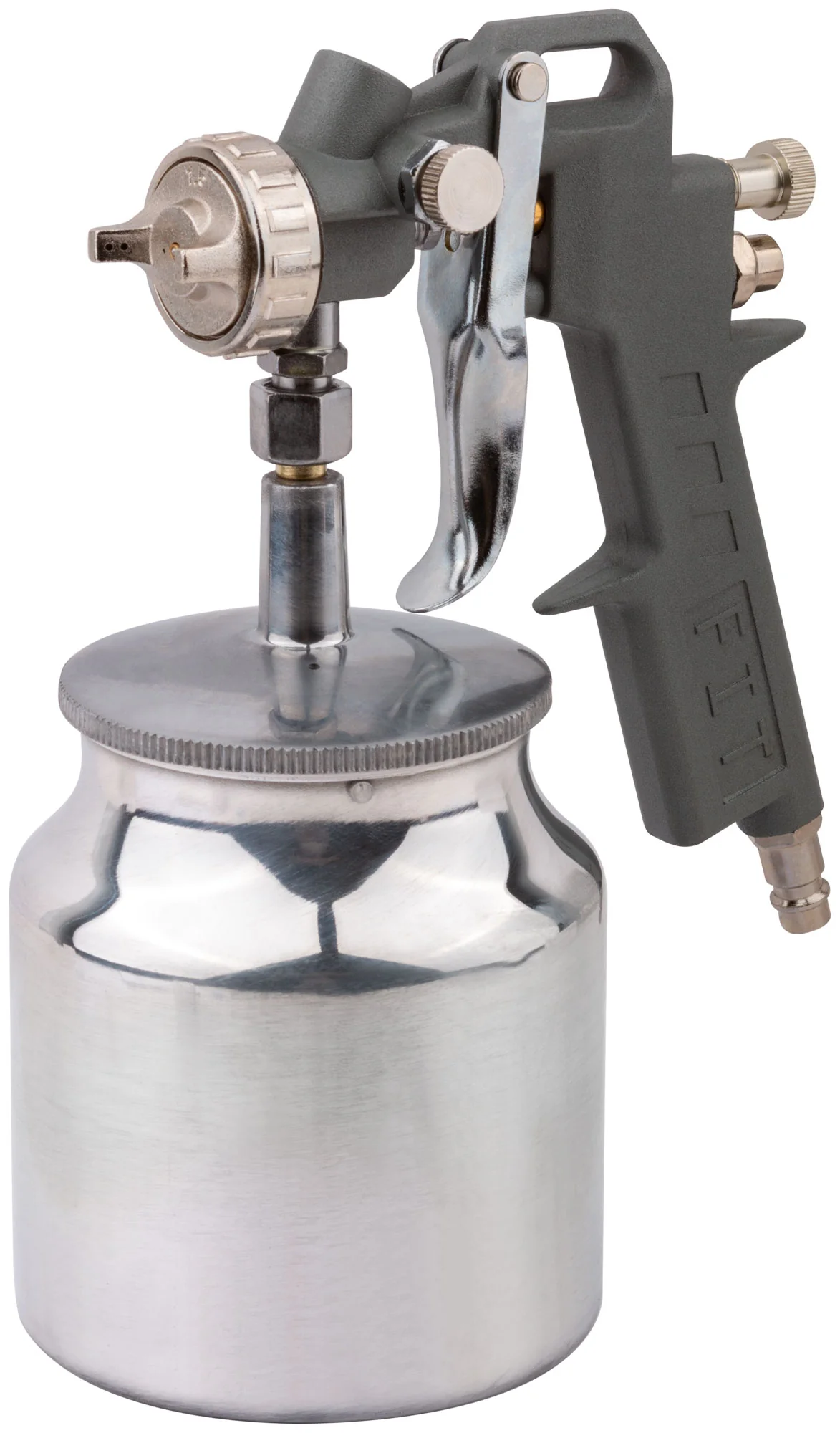 Краскопульт изготовлен из прочного алюминия, что гарантирует его долговечность и легкость. Нижний бачок объемом 750 мл позволяет работать долгое время без перезаправки. Модель поддерживает рабочее давление от 3,5 до 5 бар и расход воздуха 160-230 л/мин.