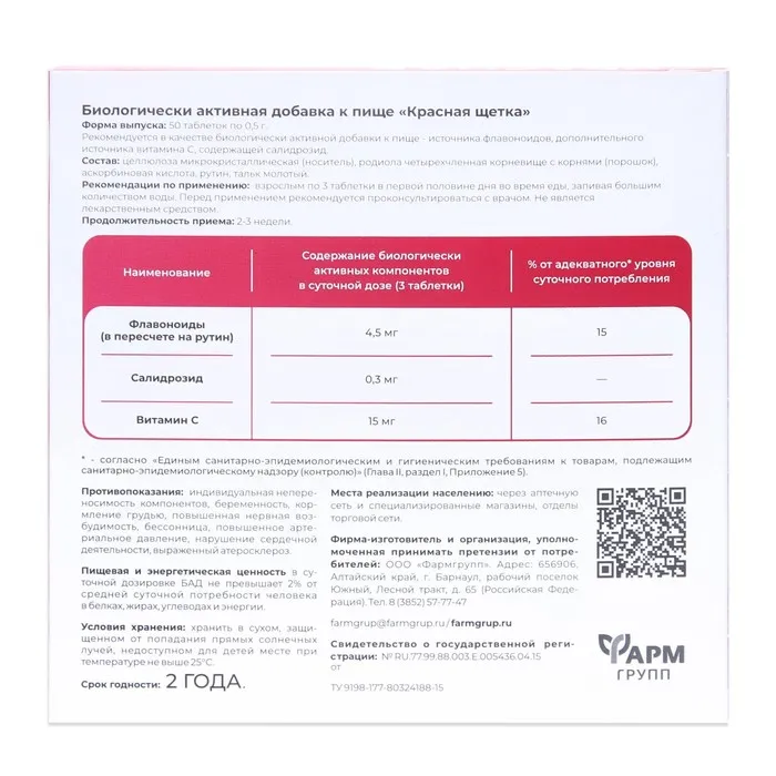 Красная щетка для женского здоровья, 50 табл по 500 мг — Характеристики