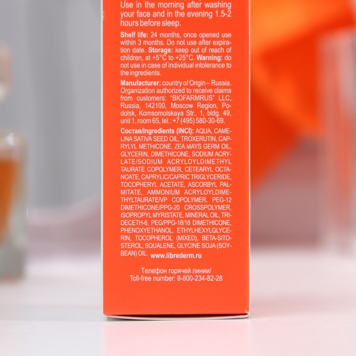 Состав: вода деминерализованная, полиакрилат натрия (и) диметикон (и) циклопентасилоксан (и) тридецет-6 (и) ПЭГ/ППГ-18/18 диметикон, масло рыжика, изогексадекан (и) диметикон/бис-изобутил ППГ20 кроссполимер, масло кукурузное, Сенсидерм В (цетеарил октаноат, каприлик/каприк триглицериды, изопропилмиристат, минеральное масло), глицерин, троксерутин, феноксиэтанол (и) этилгексилглицерин, витамин Е.