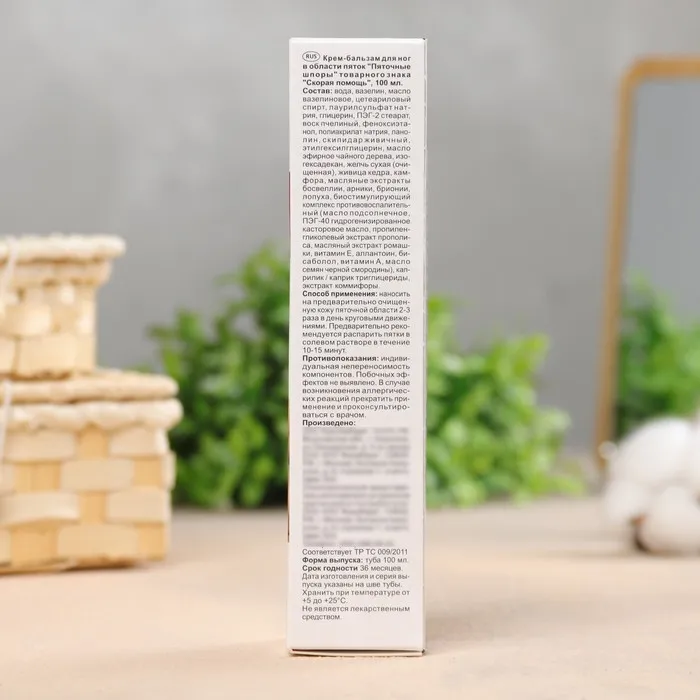 Эффективное средство для ухода за кожей ног на основе природных компонентов. Крем ускоряет заживление трещин на пятках, предотвращает образование натоптышей, смягчает и помогает удалить утолщенный роговой слой кожи, стимулирует восстановление поврежденных тканей. Витамины и масла лекарственных растений питают кожу, ускоряя заживление трещин и предотвращая их повторное появление, увлажняют и смягчают кожу, повышают ее эластичность