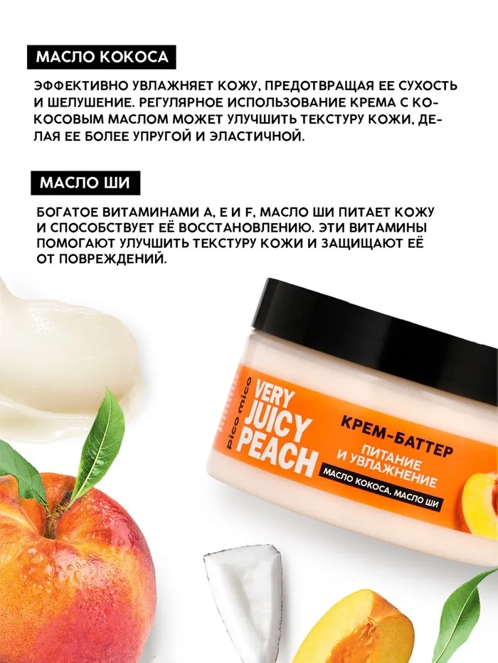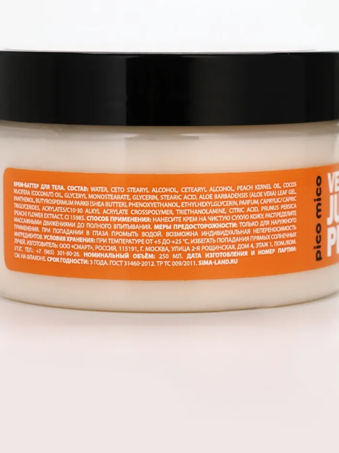 Крем-баттер для тела Very juicy peach, питание и увлажнение, с ароматом персика, 250 г, PICO MICO — Характеристики