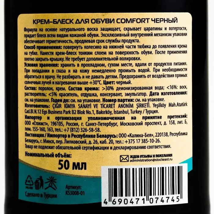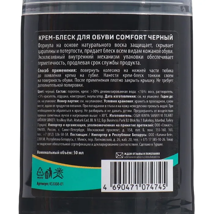 Крем-блеск для кожаной обуви Vister Comfort, Черный 50 мл — Характеристики