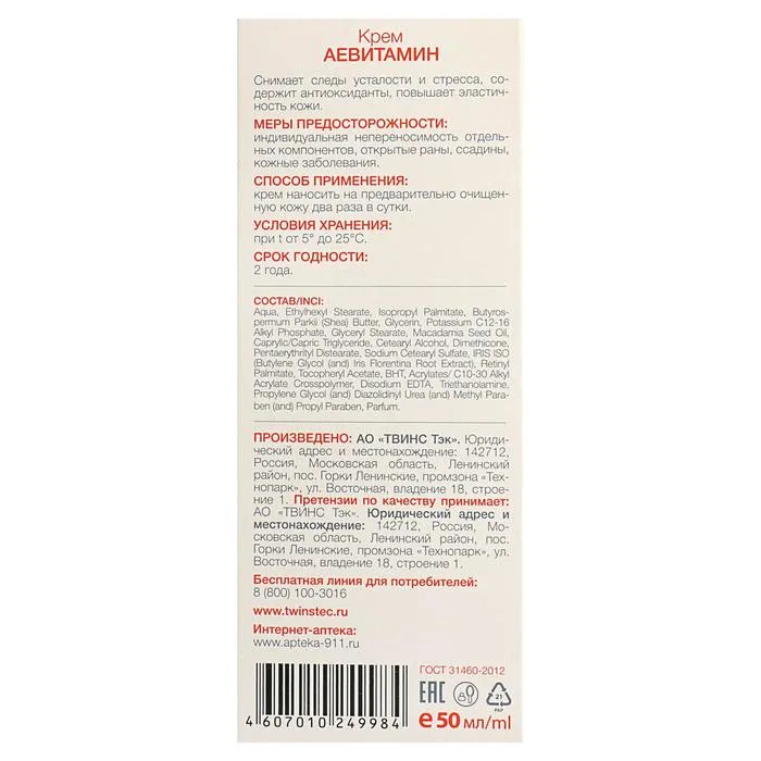 Крем для лица Caviale «Аевитамин», 50 мл — Характеристики