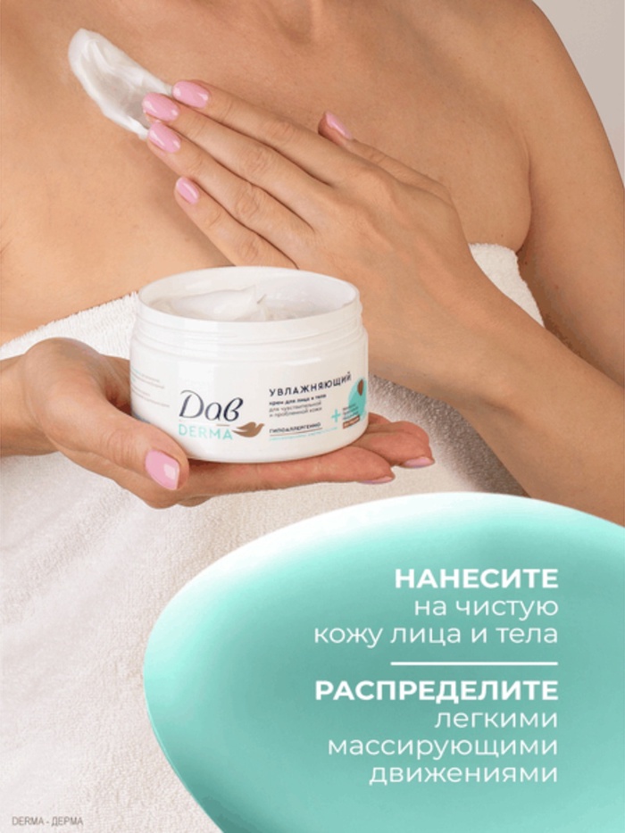 Увлажняющий крем для тела и лица Дав Derma — это универсальное средство для ухода за сухой, чувствительной и проблемной кожей.