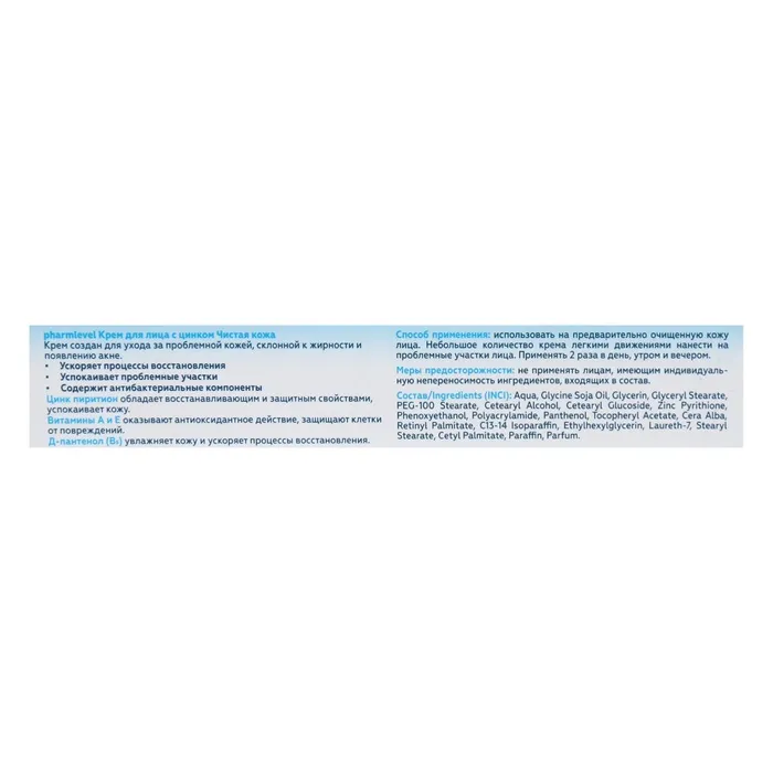 Состав: aqua, Glycine Soja Oil, Glycerin, Glyceryl Stearate, PEG-100 Stearate, Cetearyl Alcohol, Cetearyl Glucoside, Cera Alba, Zinc Pyrithione, Panthenol, Tocopheryl Acetate, Retinyl Palmitate, Acrylamide/Sodium Acryloyldimethyltaurate Copolymer, Isohexadecane, Polysorbate-80, Phenoxyethanol, Ethylhexylglycerin, Parfum.