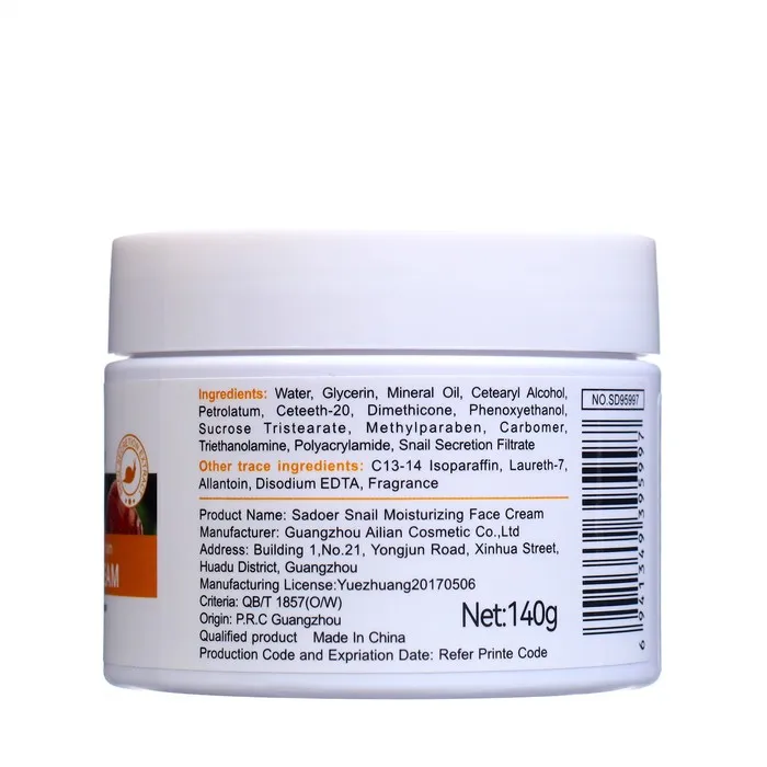 Состав: вода, глицерин, минеральное масло, цетеариловый спирт, вазелин, цетит-20, диметикон, феноксиэтанол, тристеарат сахарозы, метилпарабен, карбомер, триэтаноламин, полиакриламид, фильтрат секрета улитки, изопарафин c 13-14, лаурет-7, аллантоин, динатрий эдта, ароматизатор.
