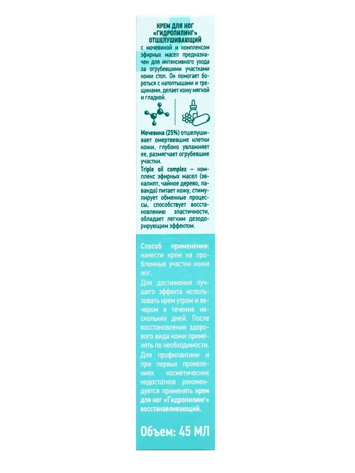 Сухая и грубая кожа, натоптыши и трещины выглядят не эстетично и доставляют существенный дискомфорт. Крем «Гидропилинг» призван помочь в борьбе с этими нежелательными явлениями.