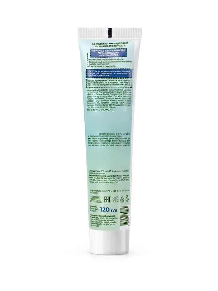 Крем для ног с освежающим эффектом ментола, эфирным маслом мяты и маслом авокадо - специально создан для снятия усталости и тяжести в ногах. Легкая текстура крема быстро распределяется и впитывается, покрывая кожу ног прохладой и свежестью, одновременно смягчая и увлажняя.