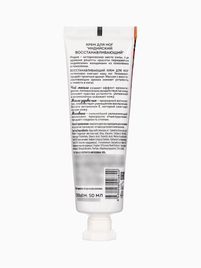 В основе крема — натуральные ингредиенты, характерные для индийской традиционной косметики, которые известны своими восстанавливающими и успокаивающими свойствами. Крем бережно ухаживает за кожей стоп, увлажняет её и снимает ощущение усталости после долгого дня.
