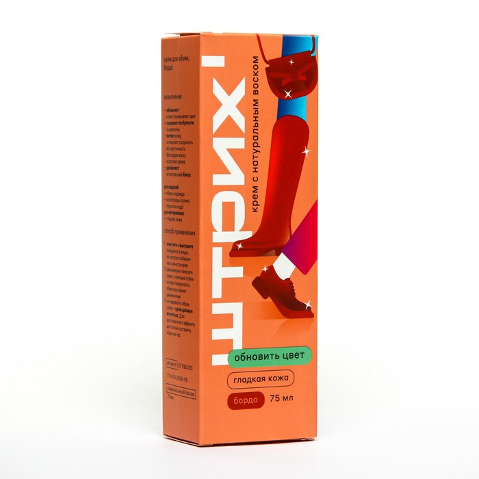 Бордо крем для обуви из всех видов гладких кож с композицией натуральных восков от бренда Штрих. Создает эффект «новизны», восстанавливает первоначальный цвет, закрашивает потертости и царапины, питает, сохраняет кожу мягкой и эластичной. Композиция натуральных восков обеспечивает стойкий блеск и надежно защищает обувь от влаги, соли и снега.