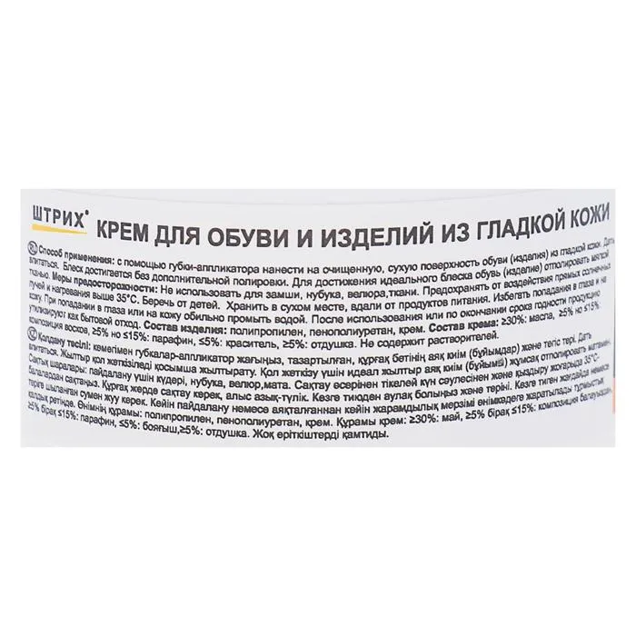 Крем для обуви ШТРИХ Основной уход банка с губкой черный 60 мл — Характеристики