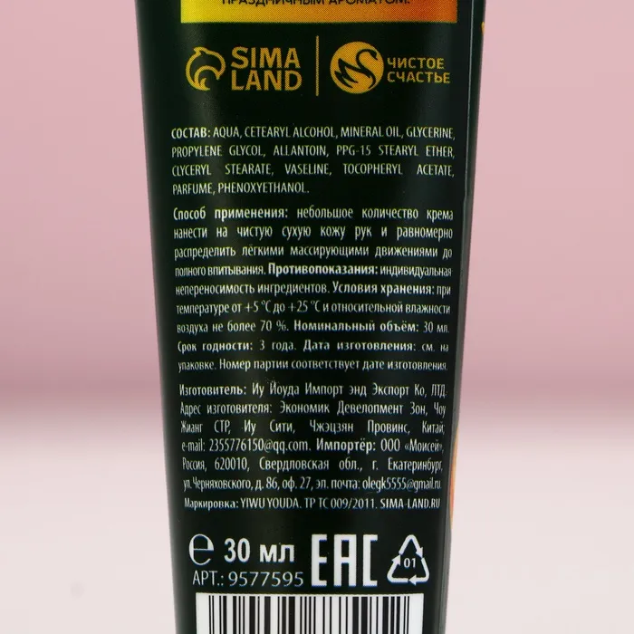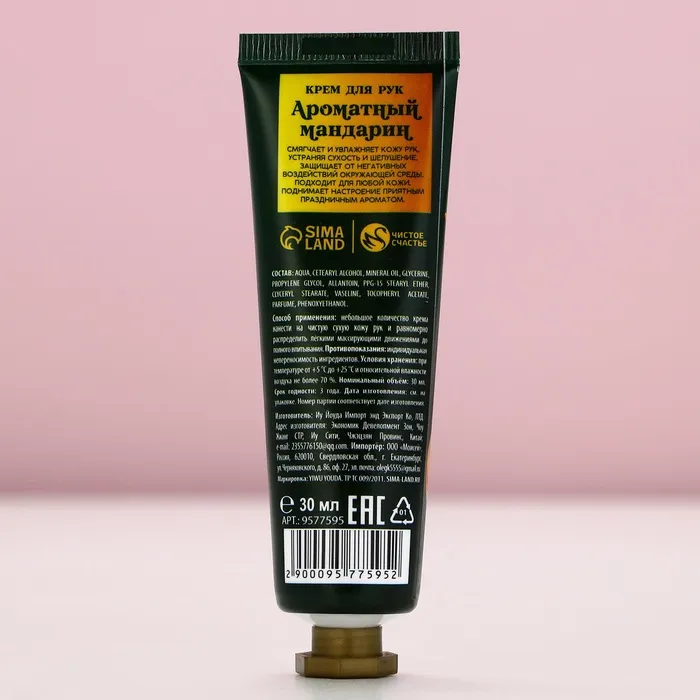 Крем для рук, 30 мл, аромат мандарина, Чистое счастье — Характеристики