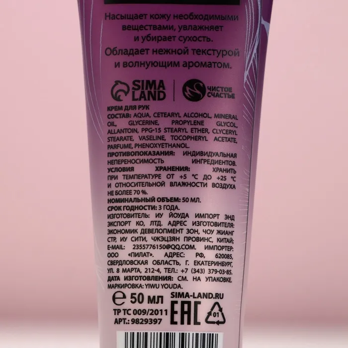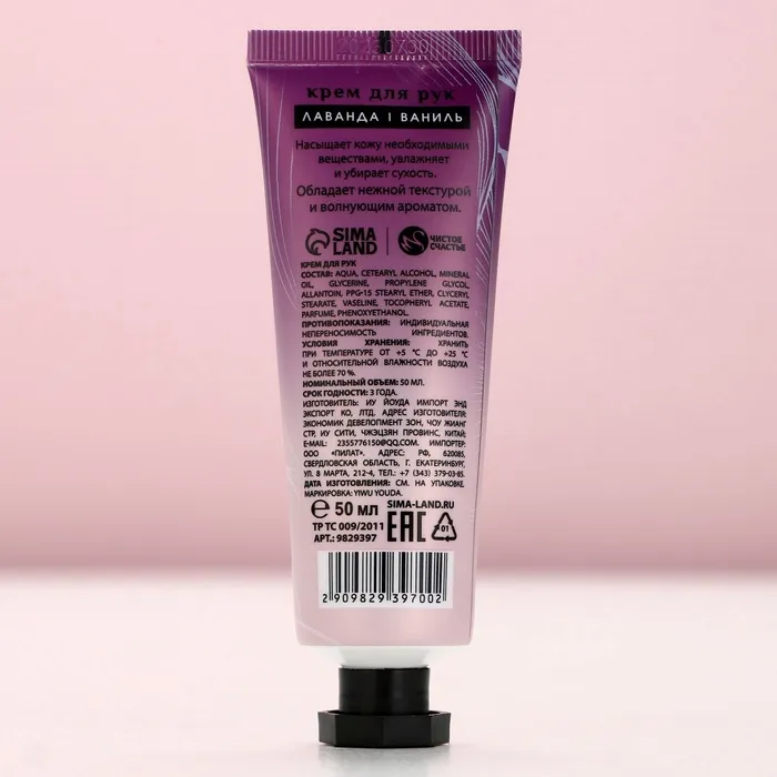 Крем для рук, 50 мл, аромат лаванды и ванили, Чистое счастье — Характеристики