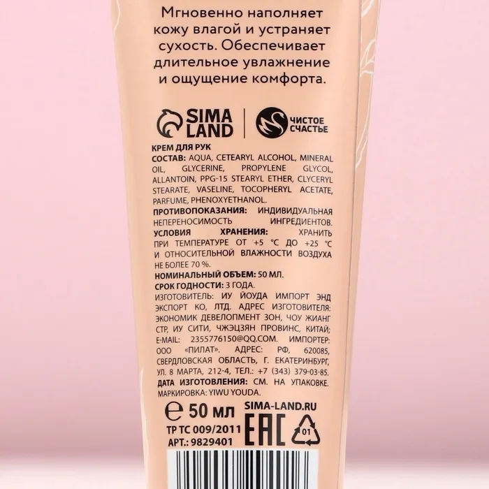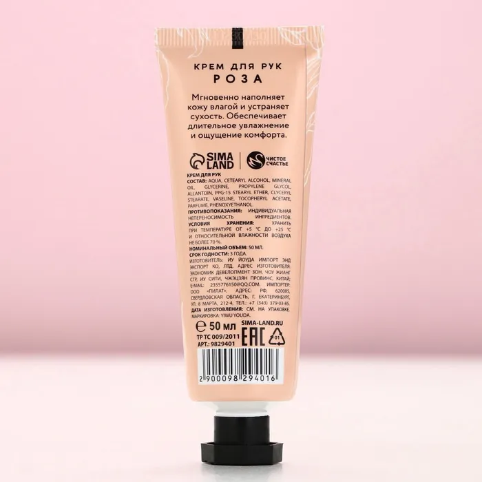 Крем для рук, 50 мл, аромат розы, Чистое счастье — Характеристики