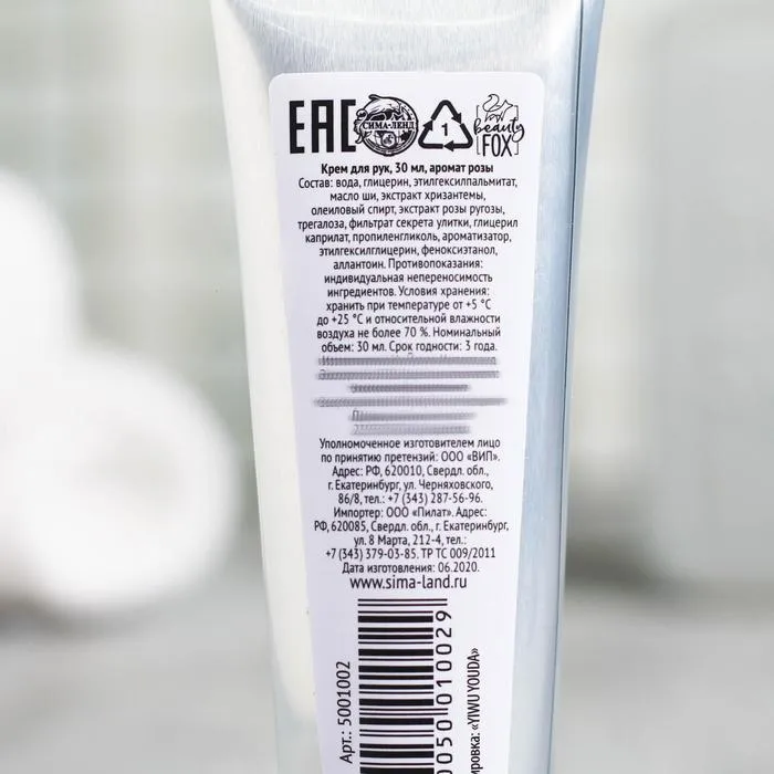 Крем для рук Beauty PANDA, 30 мл, аромат розы, BEAUTY FOX — Характеристики