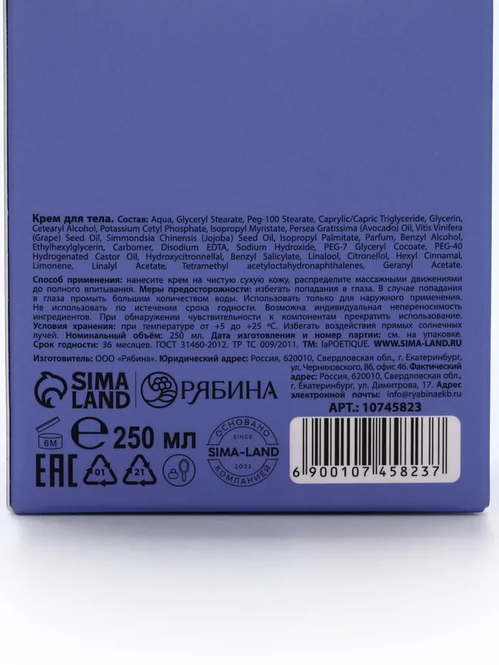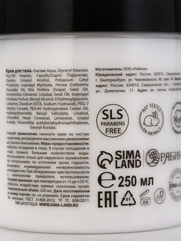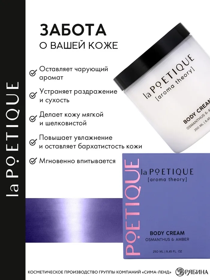 Крем для рук и тела парфюмированный laPOETIQUE, 250 мл, аромат османтус и амбра — Характеристики