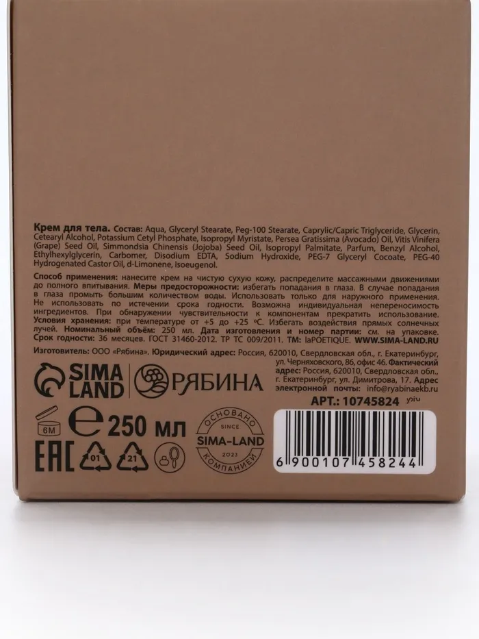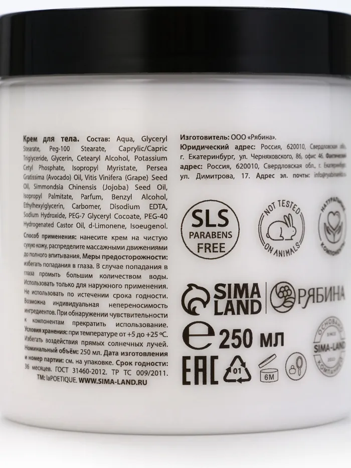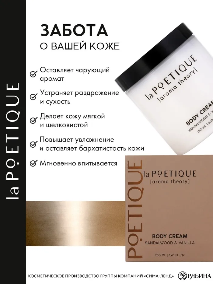 Крем для рук и тела парфюмированный laPOETIQUE, 250 мл, аромат сандал и ваниль — Характеристики