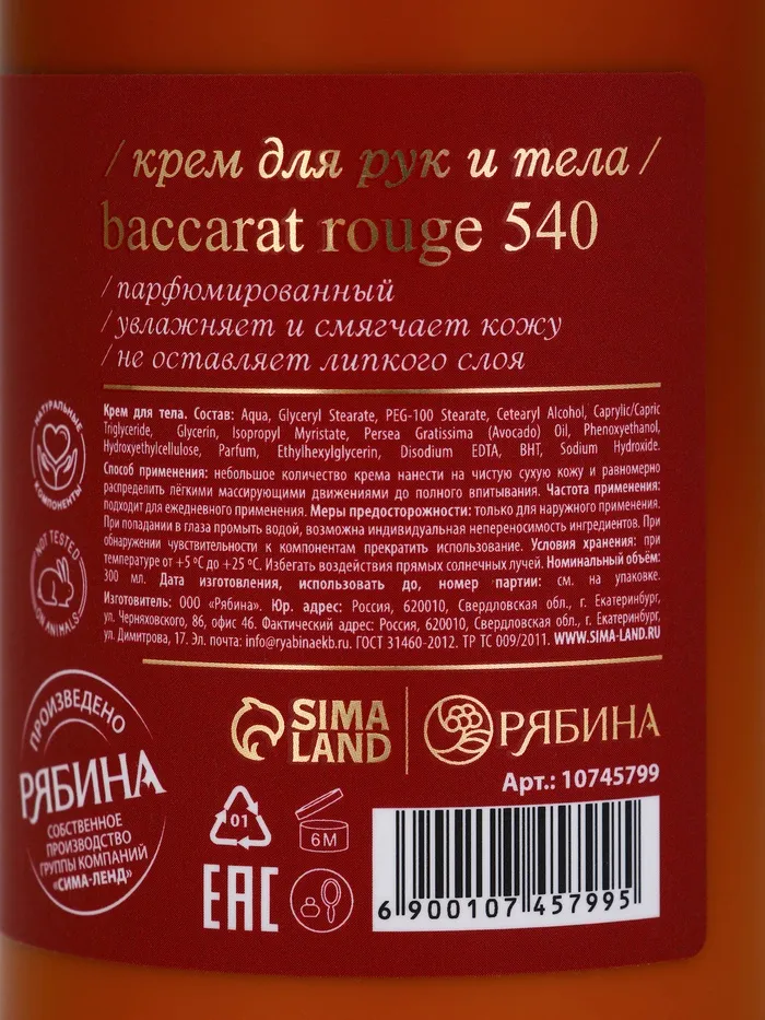 Крем для рук и тела парфюмированный laPOETIQUE, 300 мл, аромат Baccarat rouge 540 — Характеристики