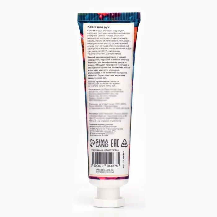 Крем для рук «Маракуйя, чёрная смородина, пион» увлажняющий, 30 мл — Характеристики