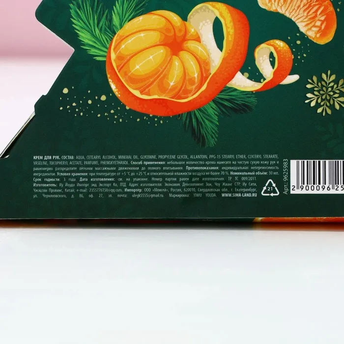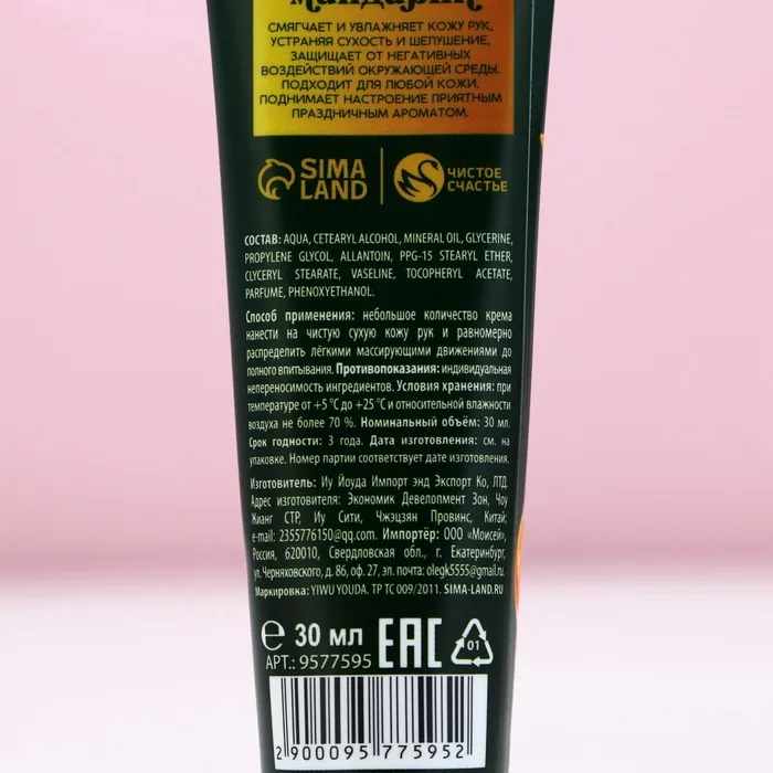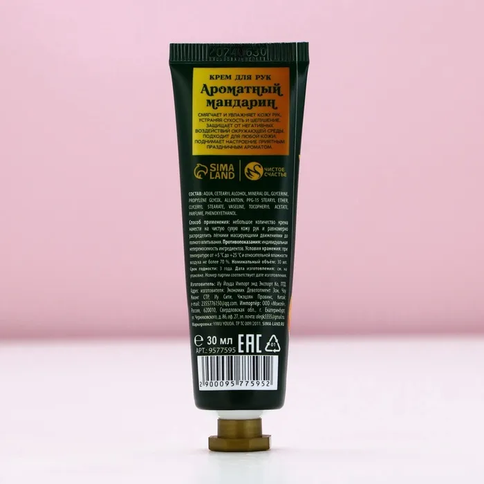 Крем для рук новогодний «Тепла и уюта!», 30 мл, аромат мандарина, Чистое счастье — Характеристики