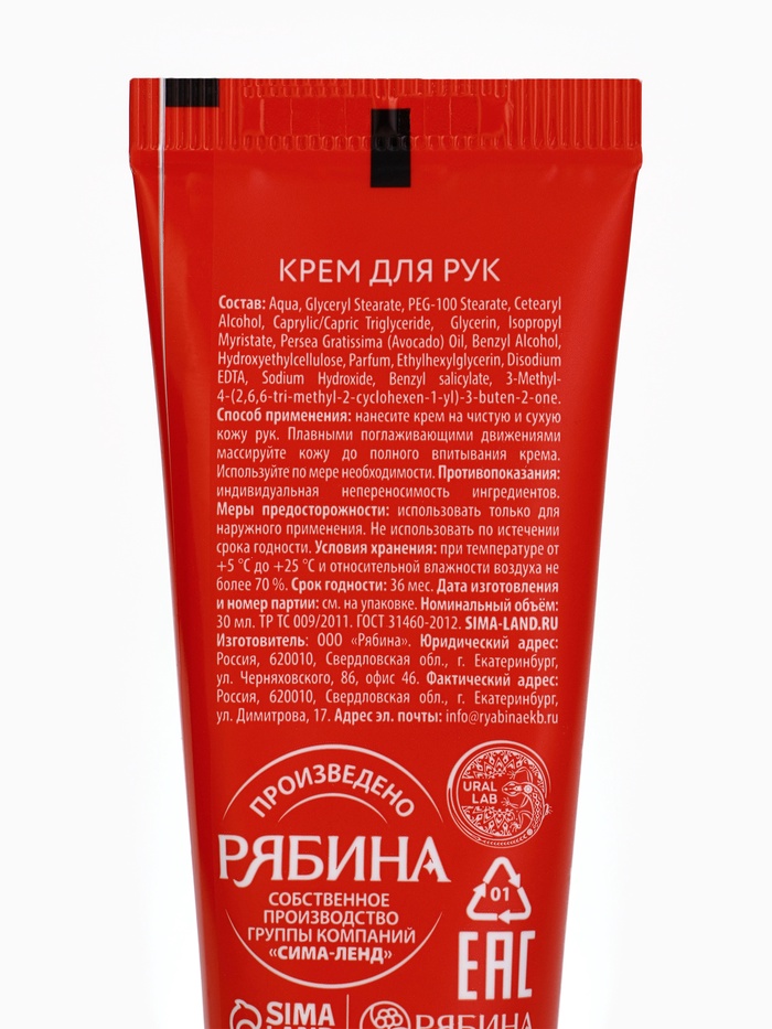 Крем для рук новогодний URAL LAB Hand cream, 30 мл, аромат зимних пряностей — Характеристики