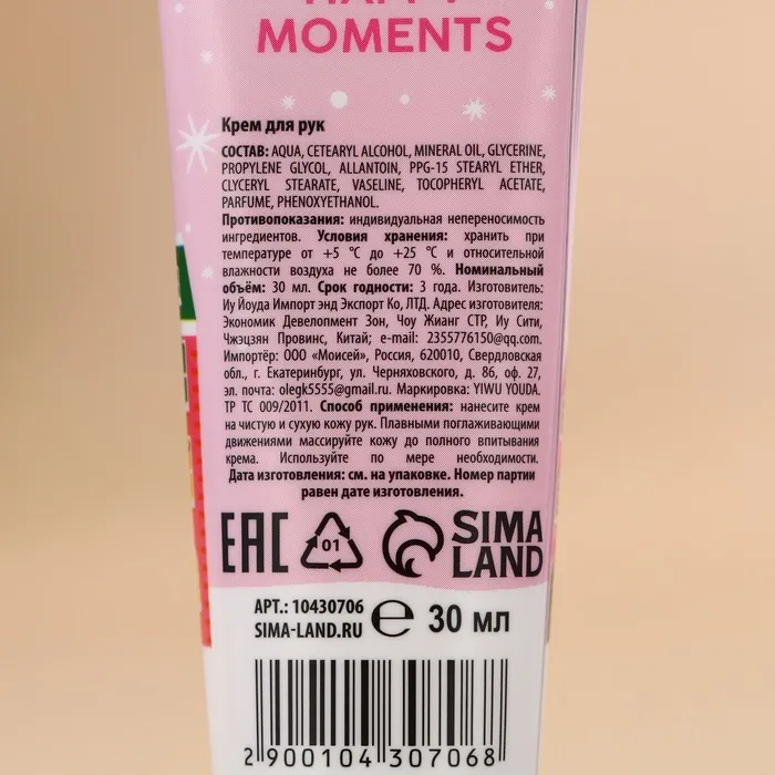 Крем для рук новогодний URAL LAB Merry Christmas, 30 мл, аромат сливочного пломбира — Характеристики