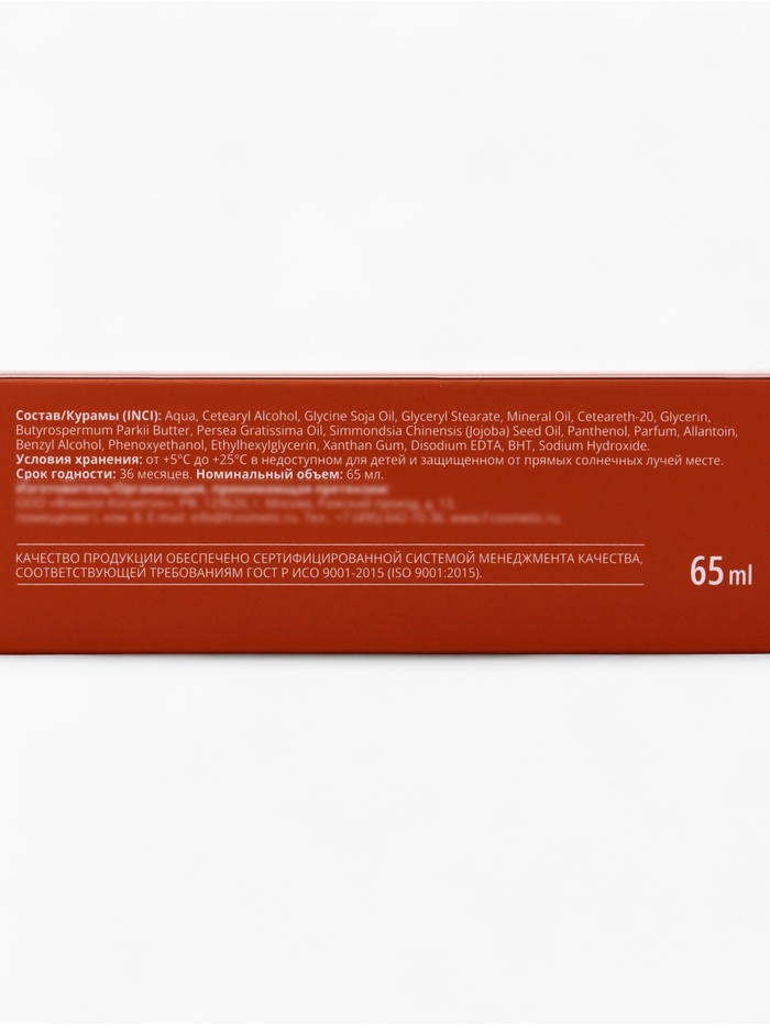 Aqua, Cetearyl Аlcohol, Glycine Soja Oil, Glyceryl Stearate, Mineral Oil, Ceteareth-20, Glycerin, Butyrospermum Parkii Butter, Persea Gratissima Oil, Simmondsia Chinensis (Jojoba) Seed Oil, Panthenol, Parfum, Allantoin, Benzyl Alcohol, Phenoxyethanol, Ethylhexylglycerin, Xanthan Gum, Disodium EDTA, BHT, Sodium Hydroxide.