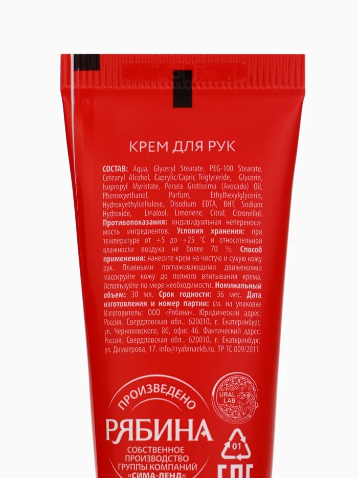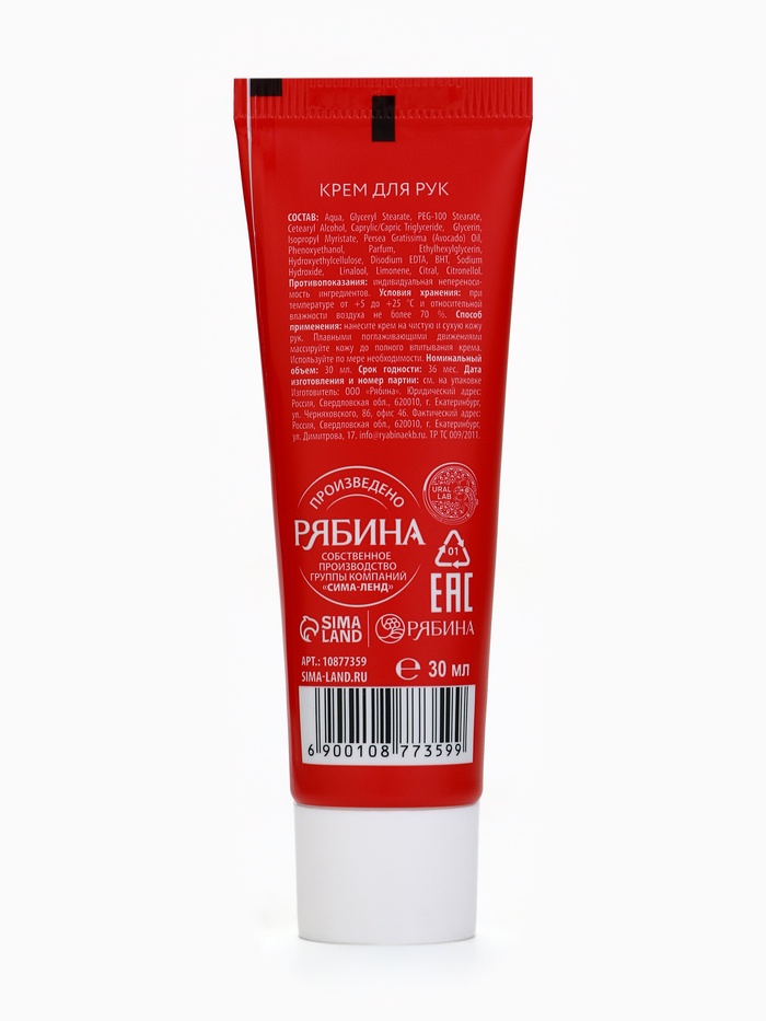 Крем для рук с ароматом мандарина, 30 мл, URAL LAB — Характеристики