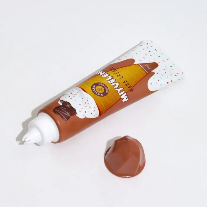 Лёгкий увлажняющий крем с ароматом наивкуснейшего мороженого. Яркий и оригинальный тюбик крема в виде мороженого вызывает восторг у любого, кому попадает в рукию, по мимо этого, он имеет специальный необычный наконечник, который позволяет контролировать количество крема при нанесении на руки. Крем замечательно питает, увлажняет, смягчает, оживляет и тонизирует кожу рук, делая ее еще более нежной, гладкой и сияющей. Крем быстро впитывается, обладает разглаживающими свойствами. Каждый крем имеет свой неповторимый аромат. После применения кожа становится невероятно мягкой, бархатистой, при этом без липкого или жирного эффекта. Подходит для ежедневного ухода за руками.