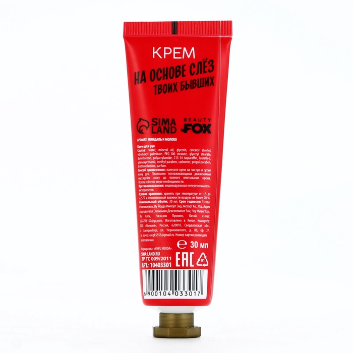 Крем для рук «Слезы бывших», 30 мл, аромат миндаля и молока, BEAUTY FOX — Характеристики