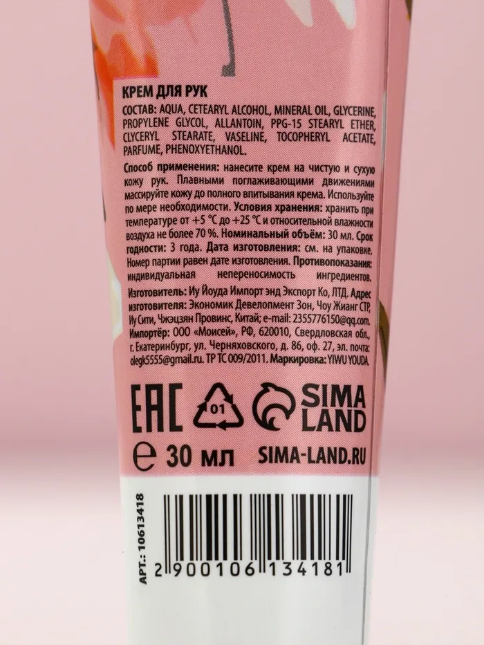 Крем для рук смягчающий, 30 мл, бархатная кожа, Чистое счастье — Характеристики