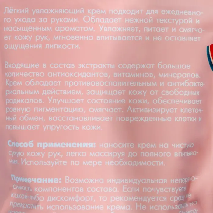Способ применения: нанести небольшое количество крема на чистую сухую кожу рук.