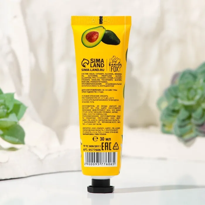 Крем для рук, увлажнение, 30 мл, аромат авокадо, BEAUTY FOOD — Характеристики