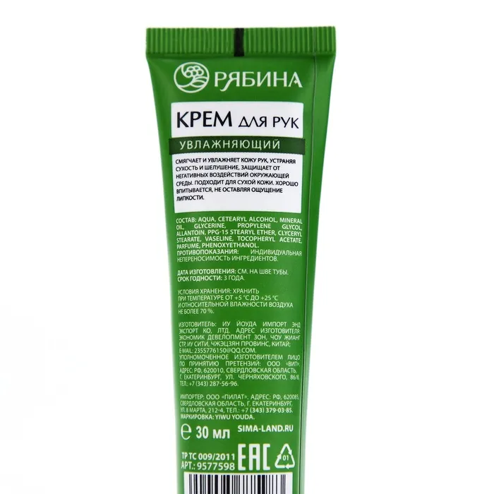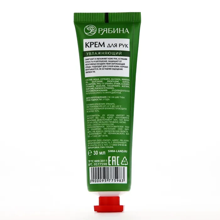 Крем для рук, увлажнение, 30 мл, аромат нежной ромашки, Рябина — Характеристики