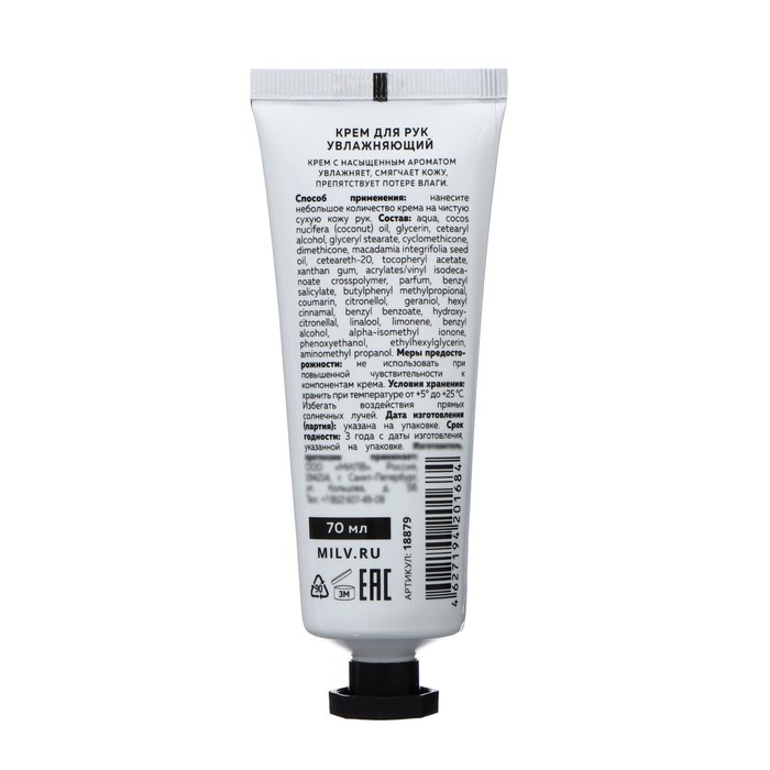 Способ применения: нанести небольшое количество крема на чистую сухую кожу рук. Подходит для ежедневного применения.