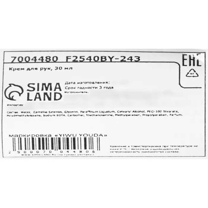 Способ применения: нанести небольшое количество крема на чистую сухую кожу рук.