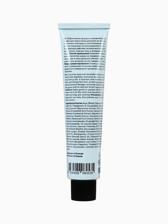 Крем мягко разглаживает поверхность кожи, укрепляет её защитный барьер и делает контуры шеи и декольте более подтянутыми и ухоженными. Лёгкая текстура быстро впитывается, не оставляет липкости и обеспечивает комфорт в течение дня.