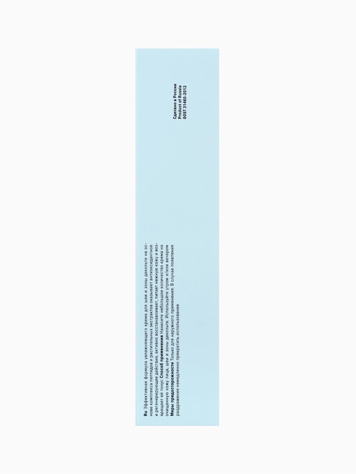 Эффективный увлажняющий крем для шеи и зоны декольте создан на основе комплекса пептидов и ценных растительных экстрактов, которые интенсивно восстанавливают и питают тонкую, склонную к увяданию кожу. Формула обладает выраженным антиоксидантным и регенерирующим действием, помогает повысить упругость, выровнять тон и вернуть коже гладкость и эластичность.