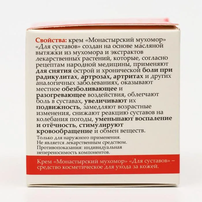 Крем для суставов монастырский «Мухомор», 50 мл — Характеристики
