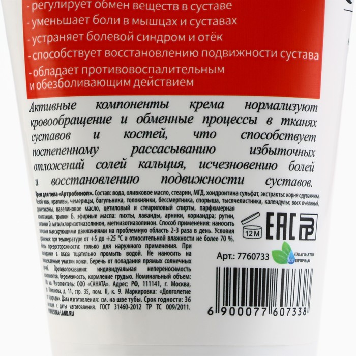 Крем для суставов с хондроитином и целебными травами, 100 мл, КЛАДОВАЯ КРАСОТЫ — Характеристики