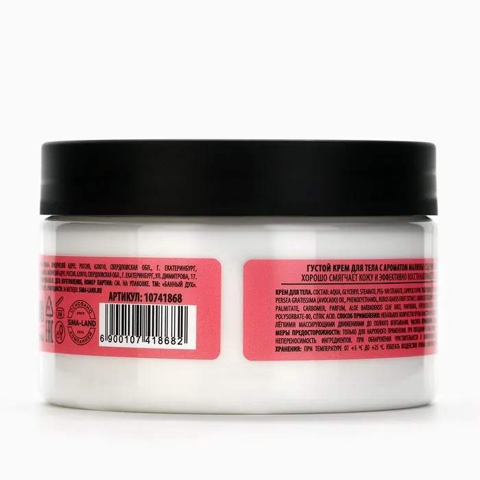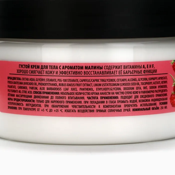 Крем для тела густой, аромат малины, 250 мл, Банный Дух — Характеристики