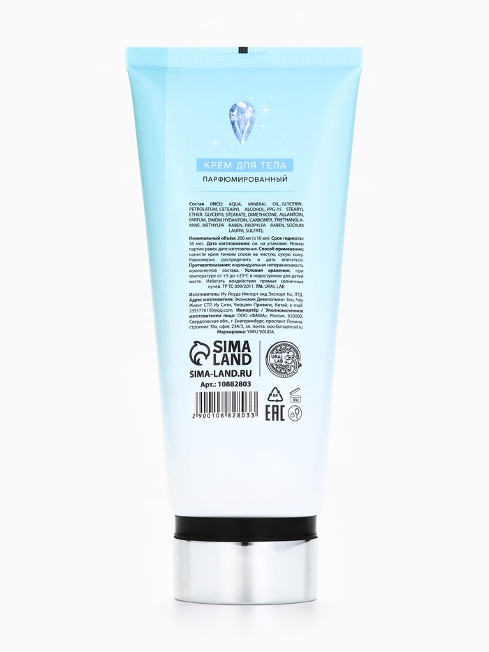 Крем для тела новогодний парфюмированный Winter Jewels, 200 мл, URAL LAB — Характеристики