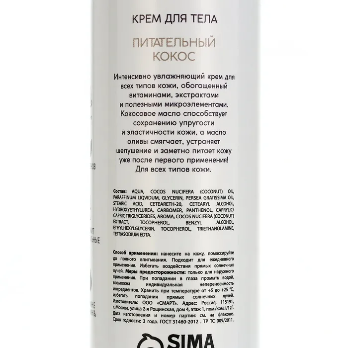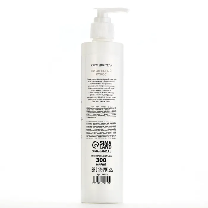 Крем для тела против сухости кожи с маслом кокоса и оливы, 300 мл, BONAMI — Характеристики