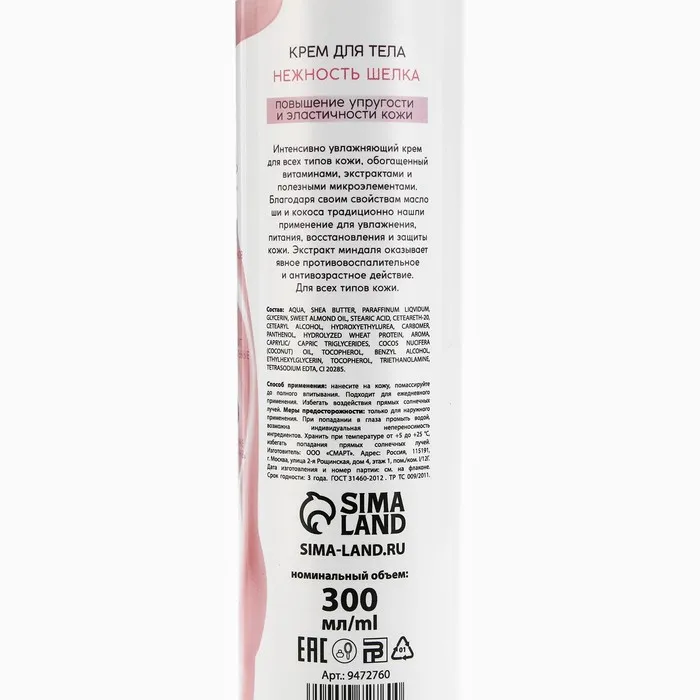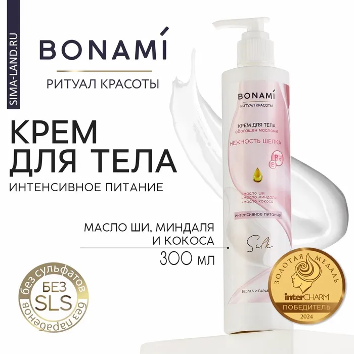 Крем для тела с маслом ши, миндаля и кокоса, интенсивное питание, 300 мл, BONAMI — Характеристики